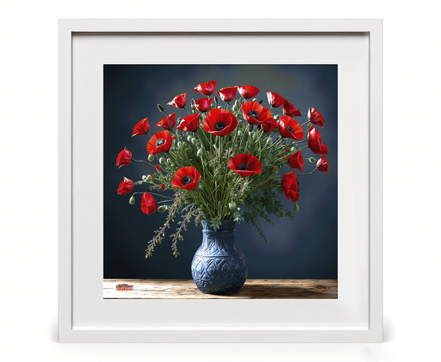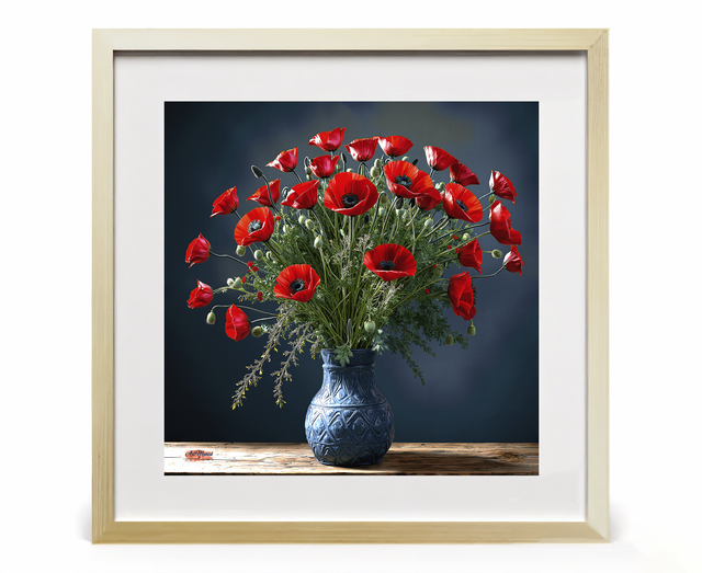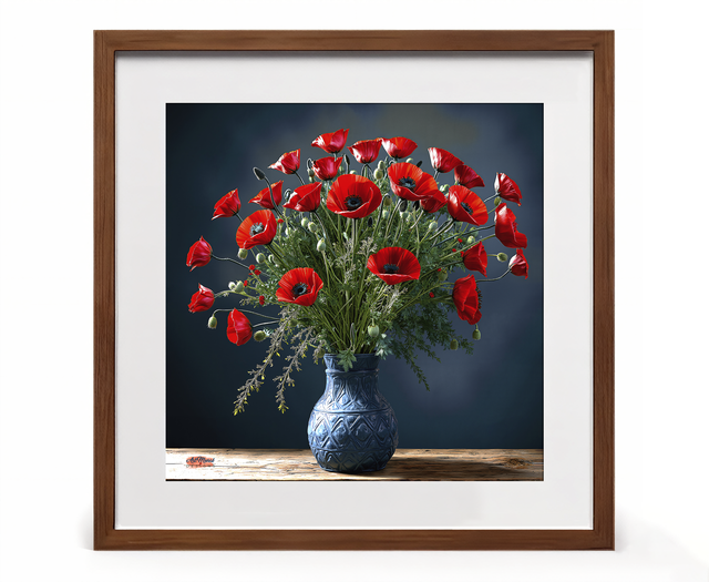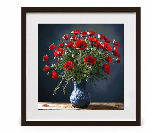 Photo encadrée “Bouquet de Coquelicots” – Art floral rouge & noir, tirage d’art de qualité musée, décoration murale élégante et intemporelle