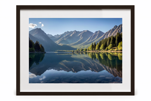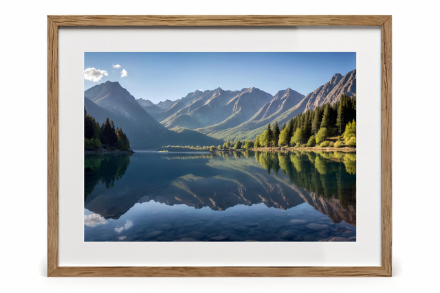 Transformez votre intérieur en havre de paix avec cette photo encadrée élégante, véritable œuvre d’art naturelle. Inspirée par la sérénité des montagnes et la douceur d’un lac au petit matin, cette création invite à la détente et à l’harmonie.