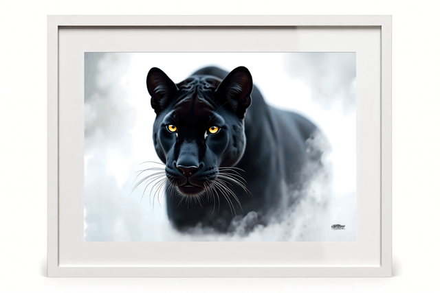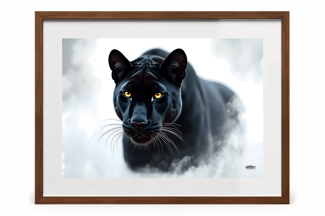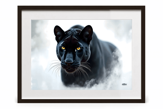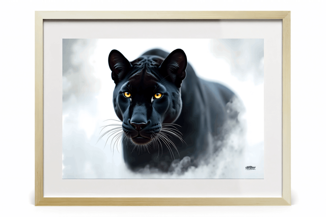 Ajoutez une touche de majesté et de puissance à votre intérieur avec cette panthère noire surgissant du brouillard, une œuvre captivante au regard intense. Ce tirage d’art haut de gamme offre une qualité musée grâce à une impression numérique HD sur papier premium 260 g/m², révélant chaque détail avec une profondeur saisissante.
