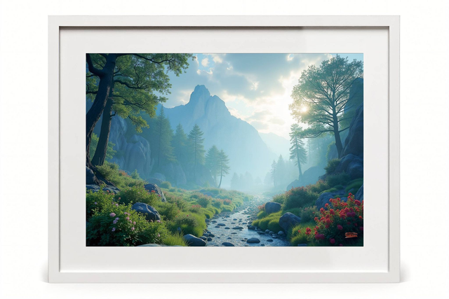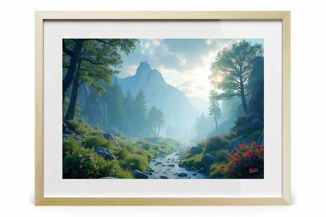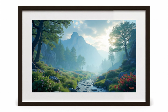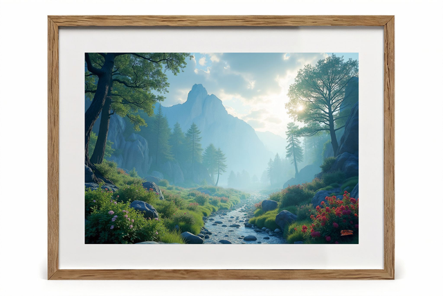 Tableau Paysage Serein de Montagne – Photo encadrée qualité musée, décoration murale apaisante, torrent montagnard